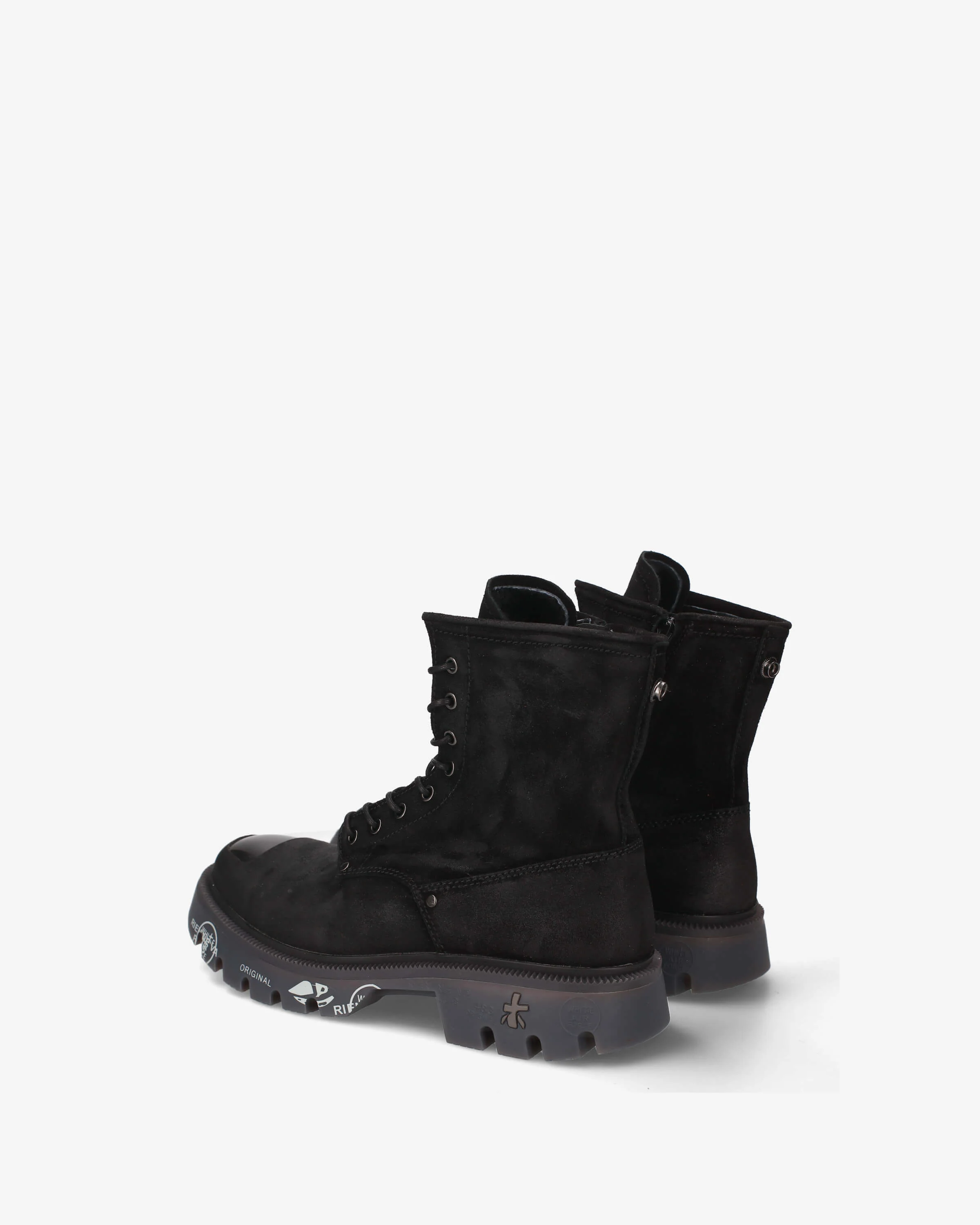 The London Suede Edition reimagines the brand’s iconic combat silhouette through a refined tactile lens. Crafted from rich black suede, it introduces a softer material contrast to the structured, utilitarian design of the London line. The metallic ABS toe insert adds an industrial edge, while the sculpted rubber sole — printed with Premiata’s signature motifs — reinforces the collection’s bold urban attitude.